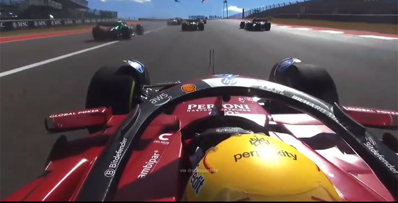 Watch Scuderia Ferrari British driver Lewis Hamilton navigate a dramatic start on lap 1 of the F1 Austin Sprint. Onboard footage captures all the action, chaos, and key moments from the first laps.